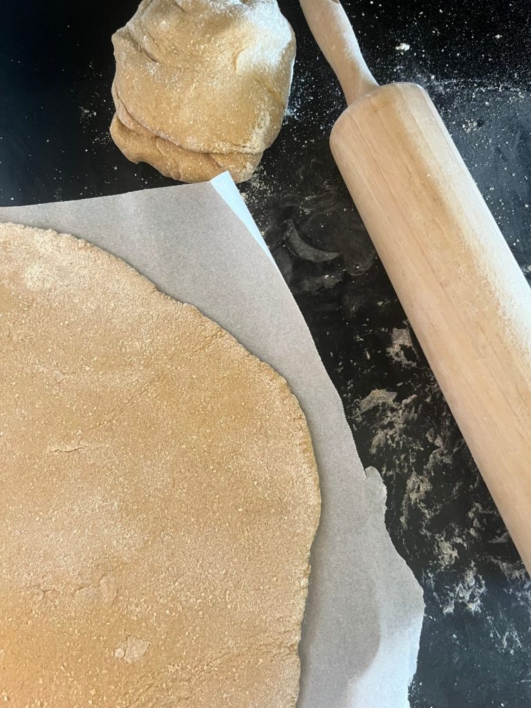 - Separate the dough to fit the two sheets.